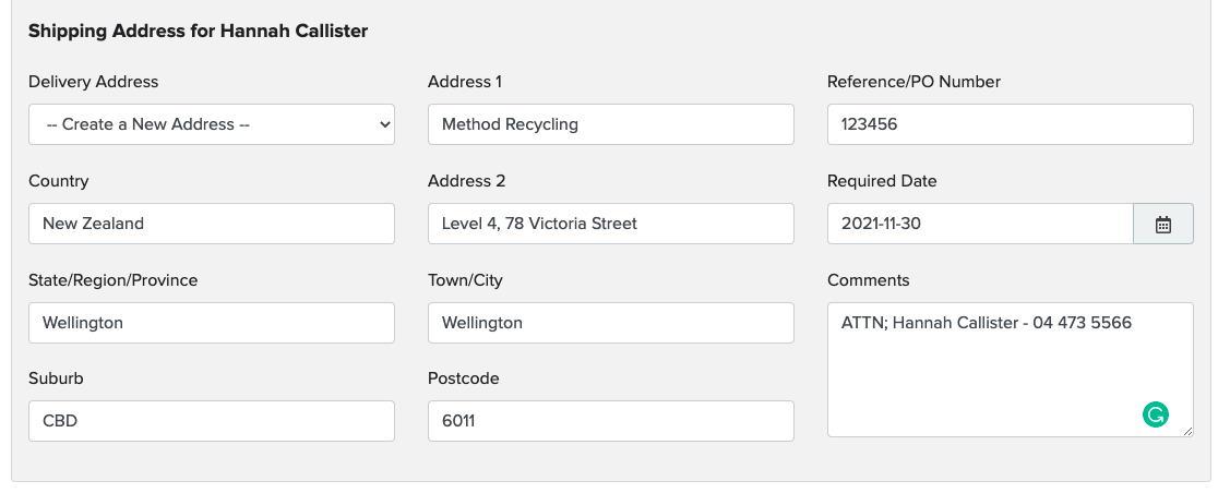 In the 'Comments' Section, please ensure the delivery contact person + phone number are included, as well as any special requirements or notes for this order.
